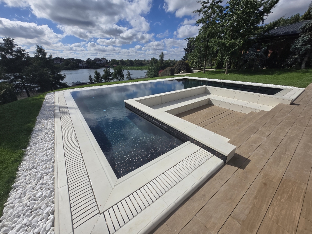 Piscina privata exterioara cu finisaj membrana PVC 3D Piscina cu skimmere cu nivel inalt de apa; Tehnologie de filtrare Zodiac; Pompe de recirculare cu viteza variabila; Control automat al nivelului…