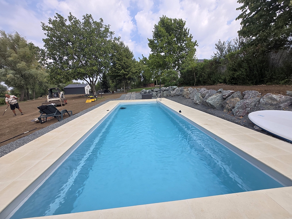 Piscina privata exterioara din fibra de sticla Piscina cu skimmer din ABS alb, cu nivel inalt de apa; Tehnologie de filtrare Zodiac; Pompa de recirculare cu viteza fixa; Control automat…
